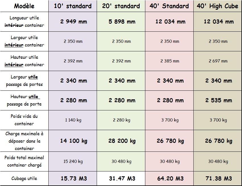Les dimensions des containers